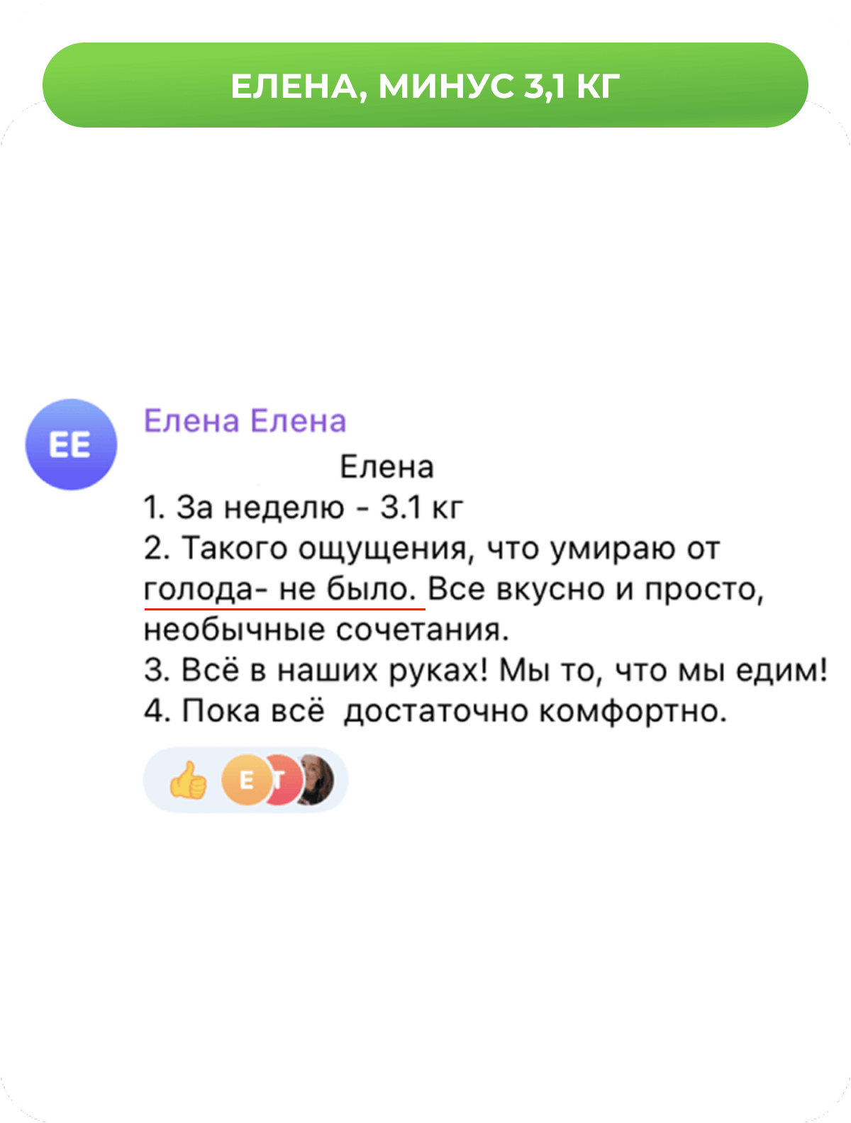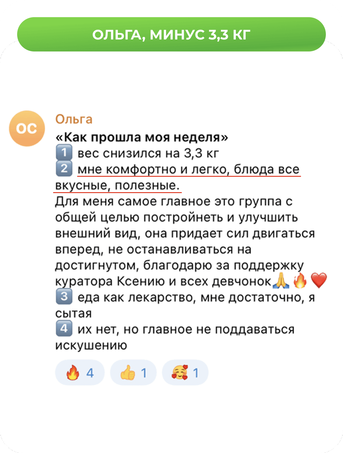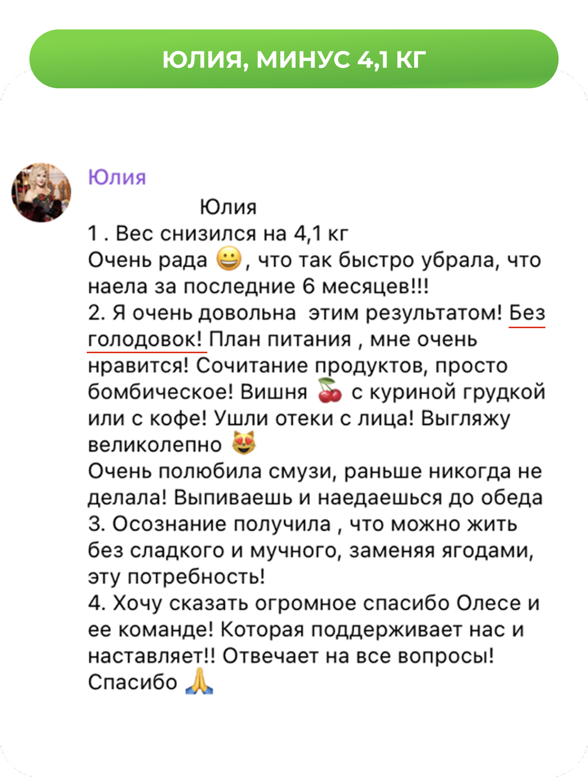 При следовании меню результат гарантирован. Если вес не уходит — Олеся скорректирует ваше меню.