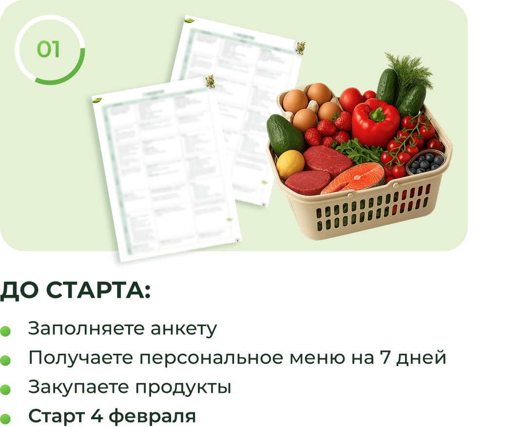 Мы предоставим список подходящих замен. Куратор подскажет, как адаптировать рацион при необходимости.
